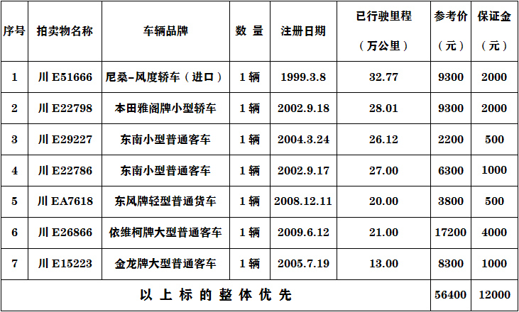 二、注意事項(xiàng):參與報(bào)廢車輛的競買人必須具有收取報(bào)廢車輛的相關(guān)資質(zhì)。